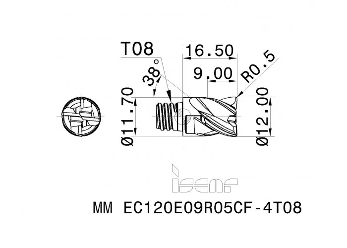 | RE - Радиус при вершине, мм | 0.5 |